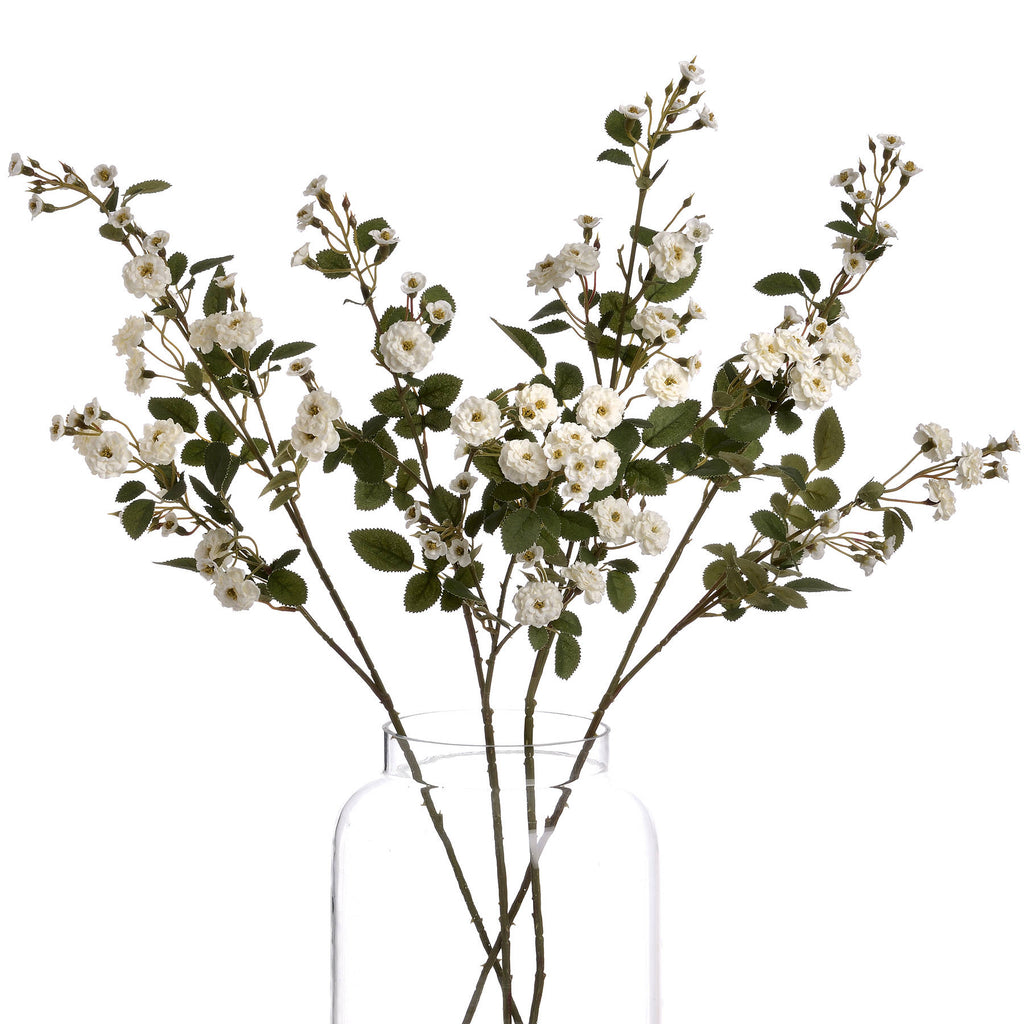 This is the White Wild Meadow Rose. A single spray of small white faux blooms to display within a favourite vase and provide a finishing touch to any interior.