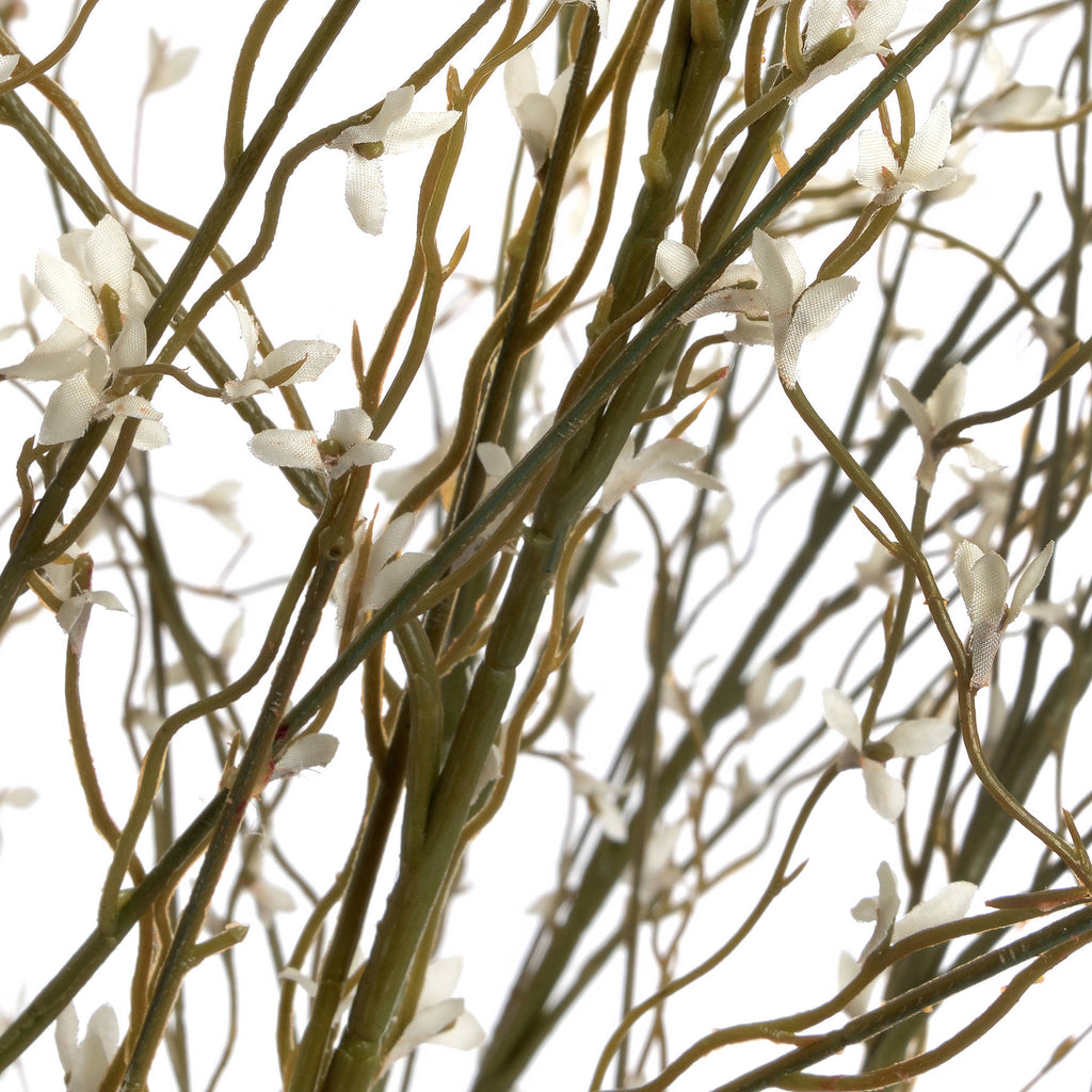 A tall single stem spray of faux white flowering pussy willow. This tall stem is of elegant proportions and will add height and movement to any arrangement.