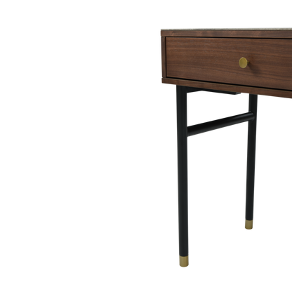 The Willow Dressing Table is elegant yet practical and can also be used as a desk. It has two spacious drawers with durable metal ball bearing runners, perfect for storing your makeup, accessories, or stationery. The contrasting brass knobs add sophistication to this beautiful piece. A stylish and contemporary addition to any dressing room or bedroom.