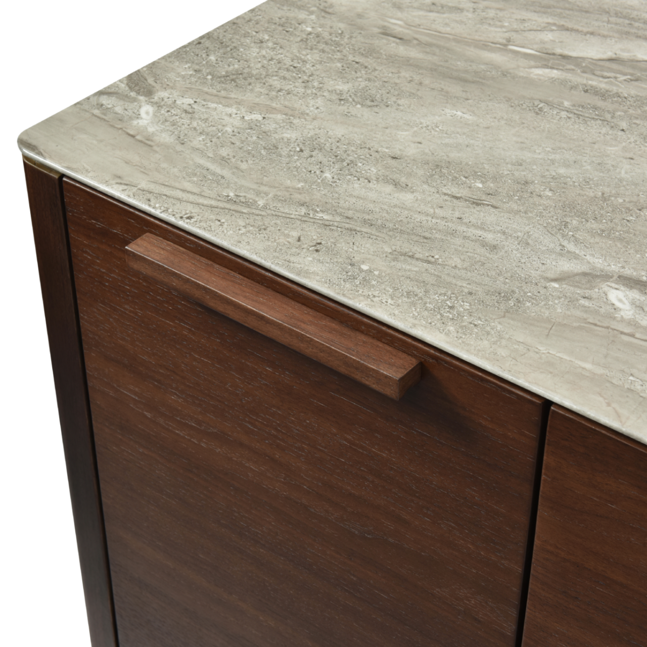 The Willow TV unit comes in a tobacco walnut finish and detailed marbled glass beige top. The unit has two doors and two drawers offering plenty of closed storage space. The drawers have soft close runners and subtle sleek black handles. This beautiful piece will compliment any style of interior and be a focal point to your living room.
