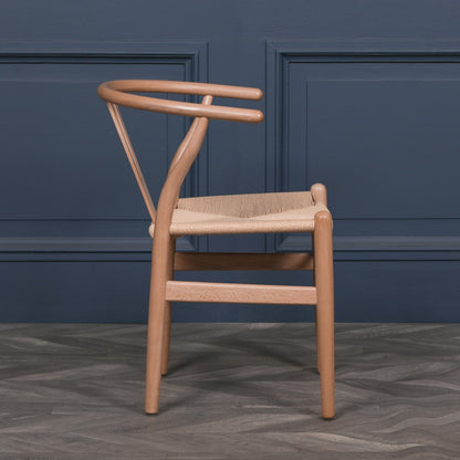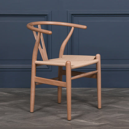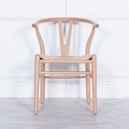 Indulge in the sophisticated elegance of our Wishbone Natural Wooden Dining Chair. Its sleek, natural design exudes luxury and complements any dining set. Crafted from premium wood, it offers both comfort and style. Upgrade your dining experience with this exclusive piece.